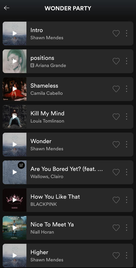 –> the name of the playlist can't has the word "stream" cause spotify may take it as spam and the stream doesn't count. for example, you can call the playlists "sp wonder"; "wonder sp"; "wonder party" etc
